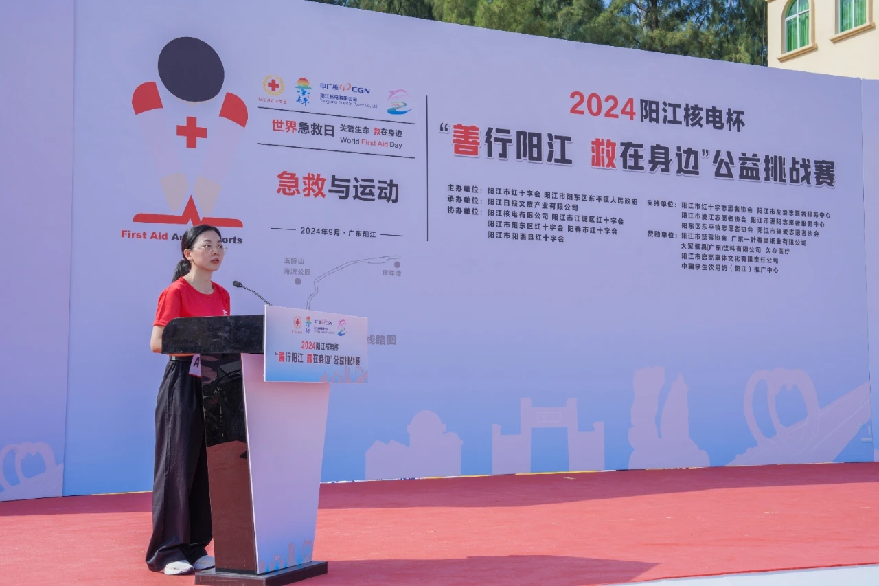 在第25個“世界急救日”來臨之際,9月13日上午,2024陽江核電杯“善行陽江 救在身邊”公益挑戰(zhàn)賽在東平珍珠灣鳴笛開賽,活動吸引了152支隊(duì)伍超600名選手參賽。廣東省紅十字會黨組成員、副會長王海華,市領(lǐng)導(dǎo)雷玉春、楊驍婷、柯燕、馮奕成出席活動。公司組織隊(duì)伍參賽,副總經(jīng)理陳江維受邀參加本次活動。