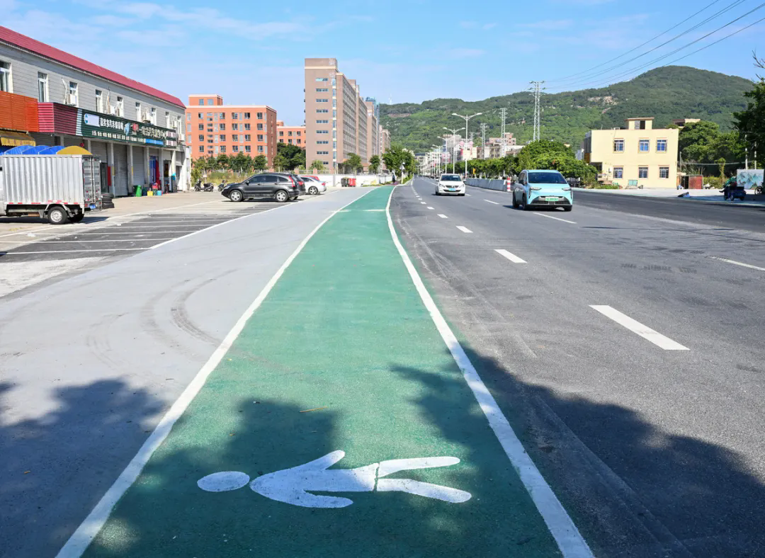 12月3日上午,記者驅(qū)車來到228國道東平鎮(zhèn)允泊段,沿途看到小車、共享單車在劃好線的框里有序停放;曾經(jīng)坑洼的路面新鋪上瀝青,道路中央的福建茶樹枝葉茂密、綠意盎然。兩旁藍(lán)紅相間的彩虹步道干凈整潔;昔日破舊、凌亂的廣告牌統(tǒng)一被換成橘色柵欄式招牌。