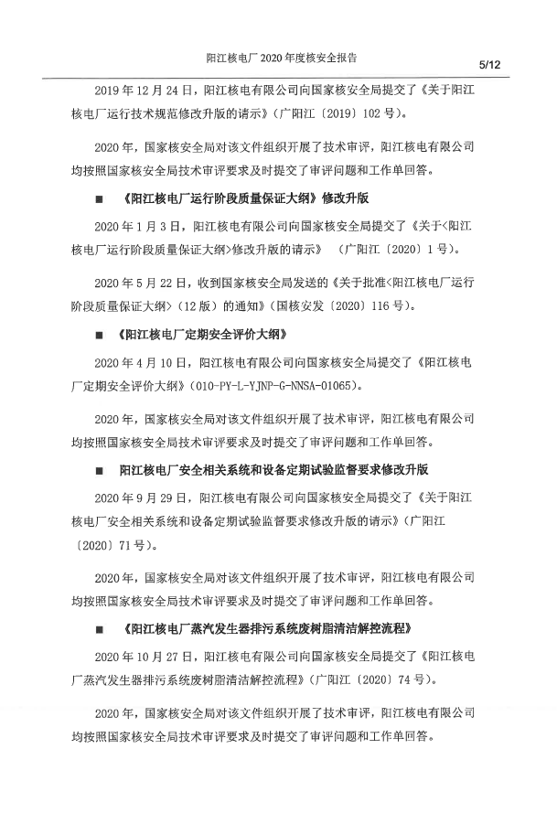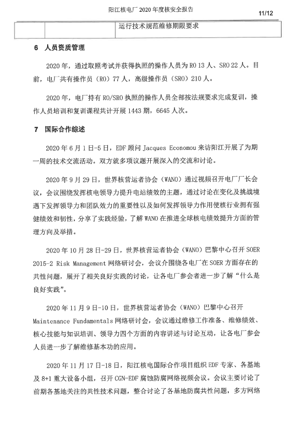 陽江核電廠2020年度核安全報(bào)告