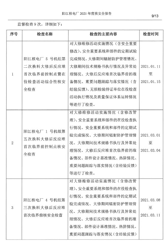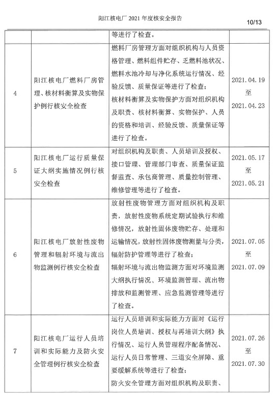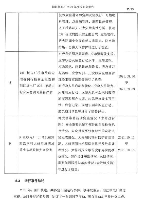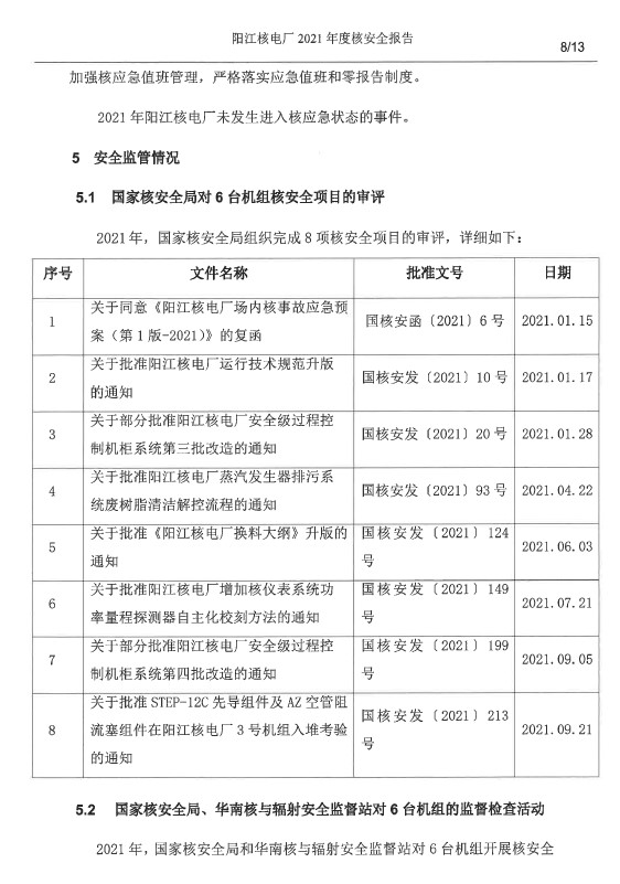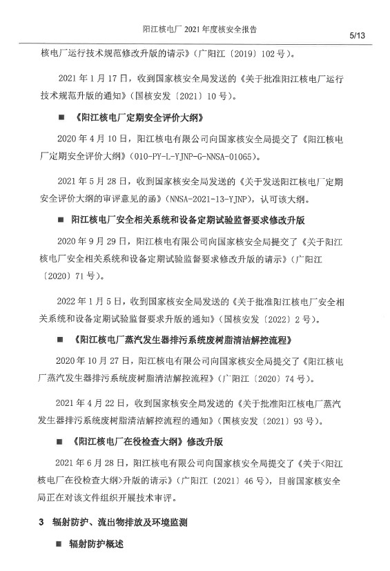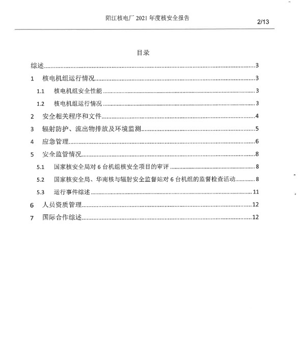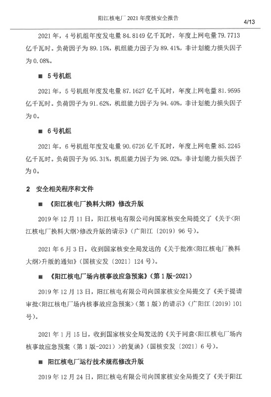 陽江核電廠2021年度核安全報(bào)告